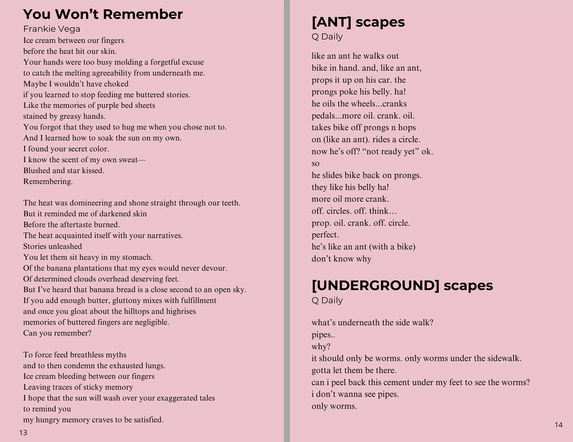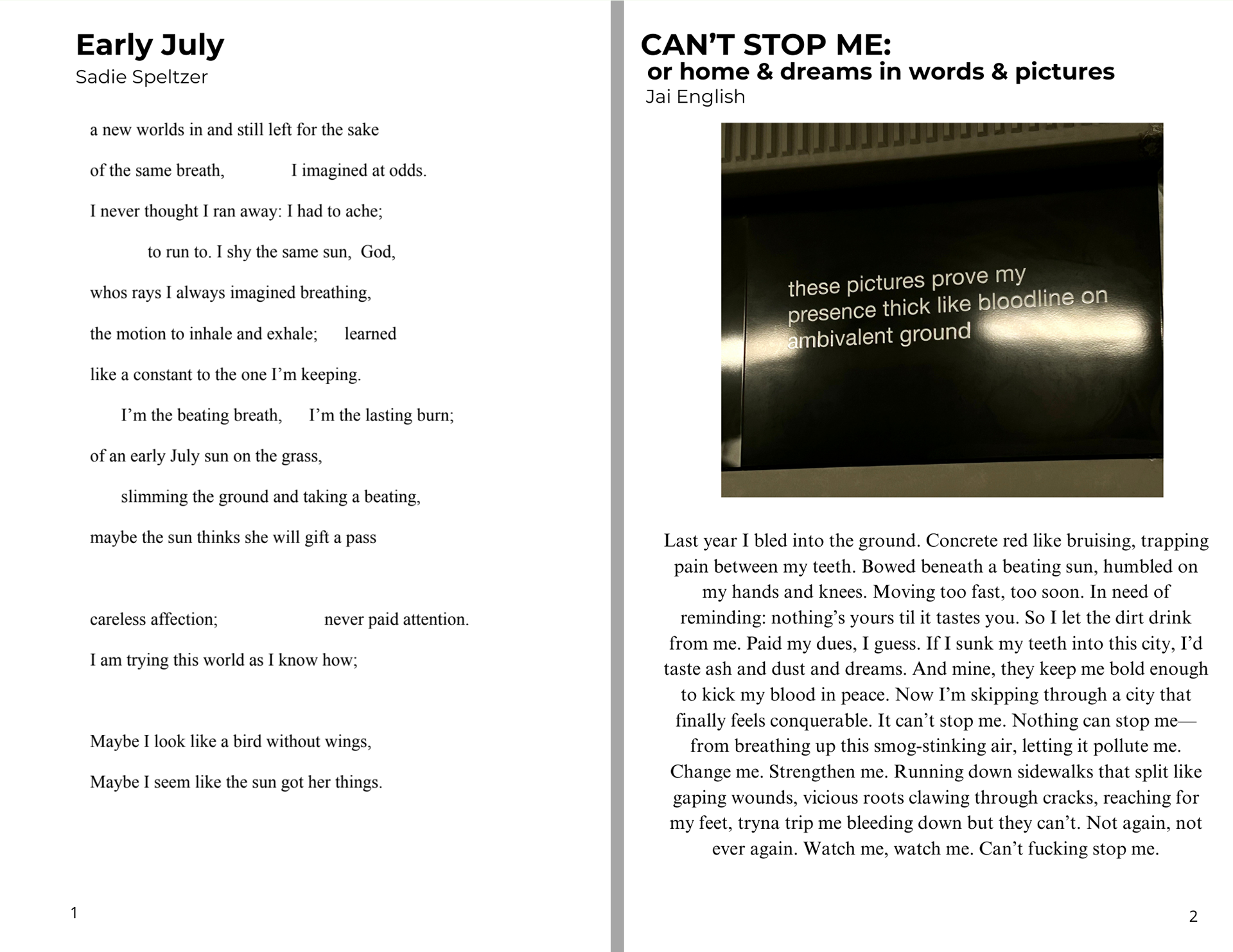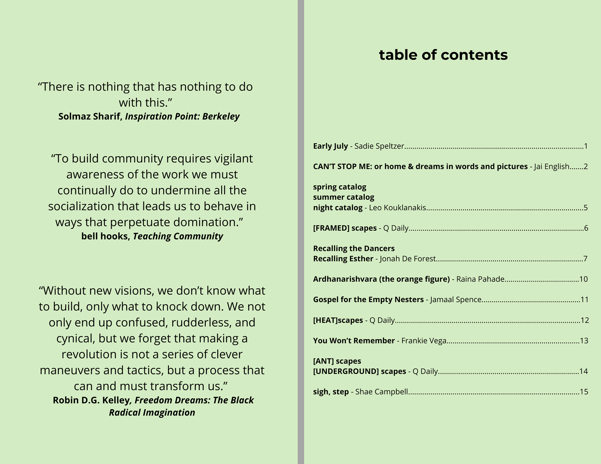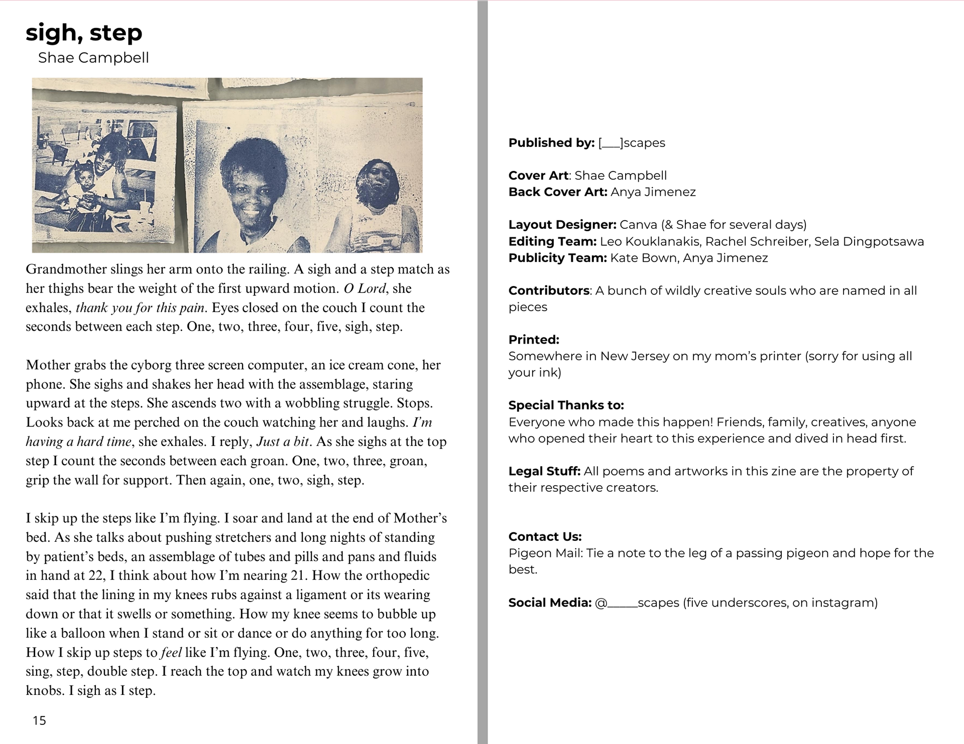 The work of the contributing writers were inspired by the theme "[___] scapes", using vivid language, and sometimes a multimedia form they were able to reflect on places they once saw as mono-faceted.